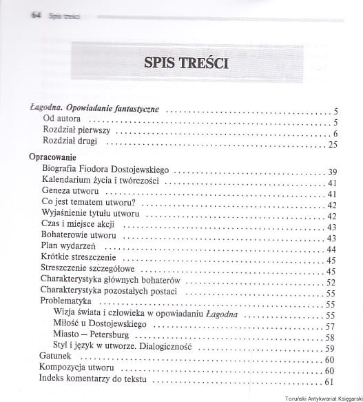 Opis wydawcy: Łagodna to jedno z najciekawszych opowiadań Fiodora Dostojewskiego. To historia mężczyzny, który powoli dochodzi do bolesnej prawdy o samym sobie i swoim życiu. Głębokie studium psychologiczne człowieka doświadczonego przez życie, który swoim postępowaniem doprowadza do tragedii. Doskonałe tłumaczenie oraz solidne opracowanie pozwolą w pełni zrozumieć mistrzostwo prozy Dostojewskiego. Lektura polecana przez nauczycieli i metodyków.