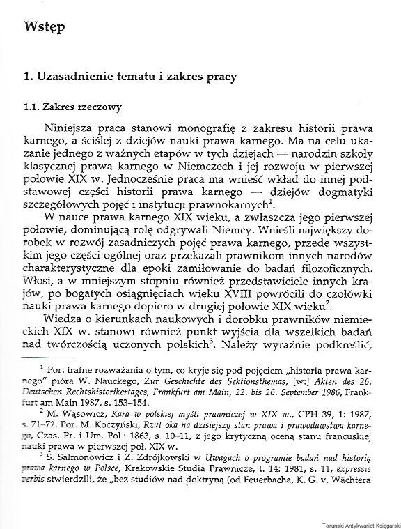 Tytuł: Nauka o winie i karze w dziejach klasycznej szkoły prawa karnego w Niemczech w 1 połowie XIX wieku