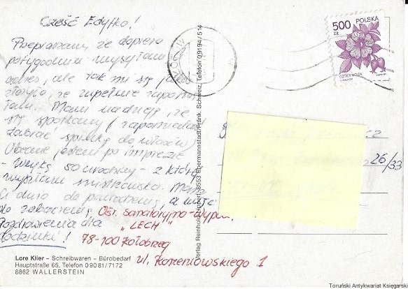 Pocztówka jest w dobrym stanie, jest zapisana na odwrocie.